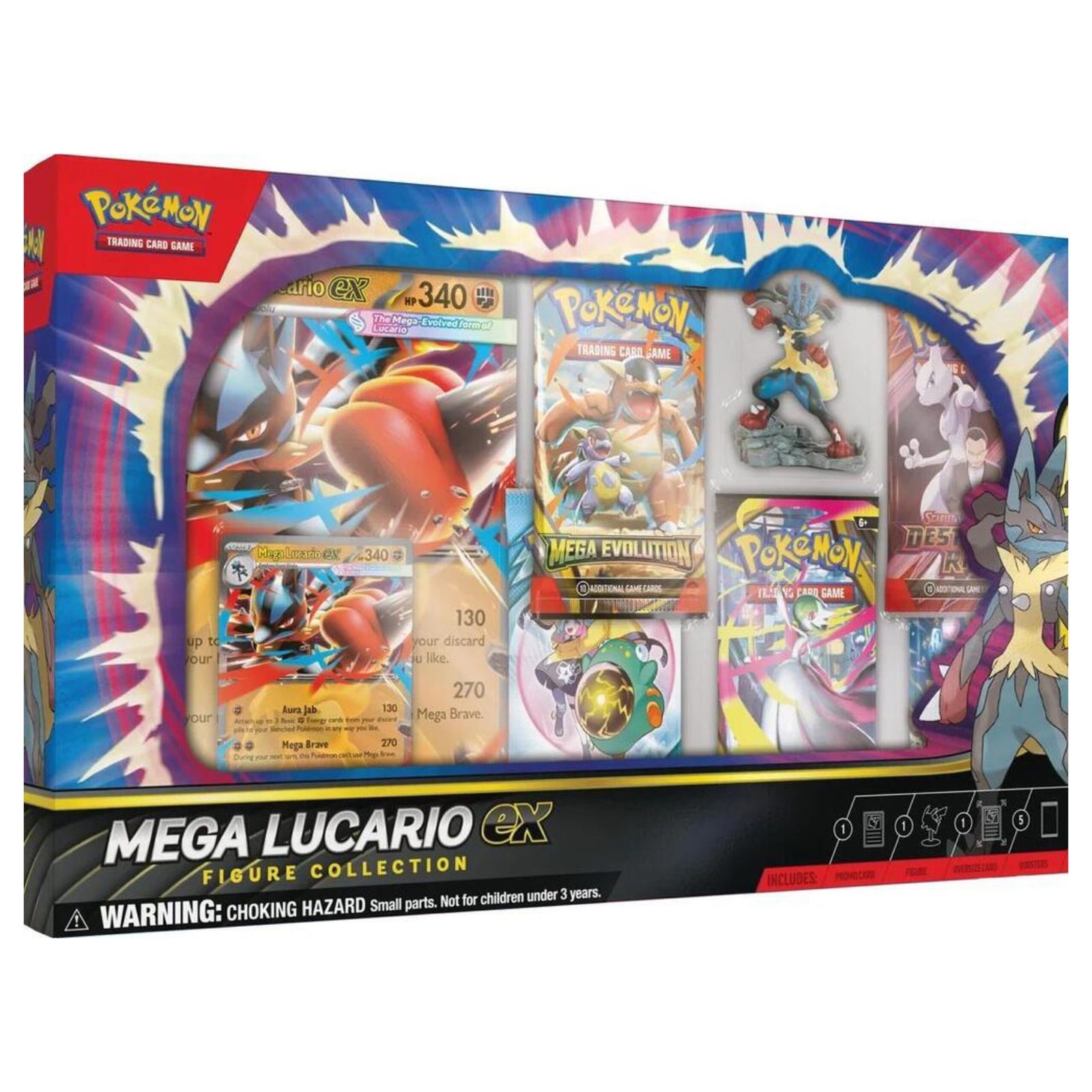 Showing no mercy, Mega Lucario ex pummels opponents while sharing discarded Energy with your Benched Pokémon! Bring this massive power to your own collection as a playable foil promo card paired with an oversize promo card and a detailed figure showing off Mega Lucario in action. You’ll find even more awesome Pokémon inside the stack of included booster packs. The Pokémon TCG: Mega Lucario ex Figure Collection includes: